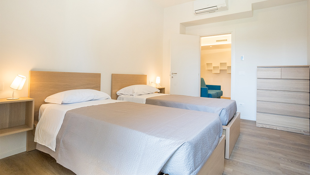 Per un soggiorno all’insegna del massimo comfort potrai scegliere uno dei 6 Trilocali, spaziosi e finemente arredati. Tutti gli appartamenti, totalmente insonorizzati, sono dotati di doppi servizi e di terrazza abitabile e arredata, aria condizionata, angolo cottura. Si sviluppano su una metratura di circa 80 metri quadri e alcuni godono di una suggestiva vista sul mare e sulla pineta.